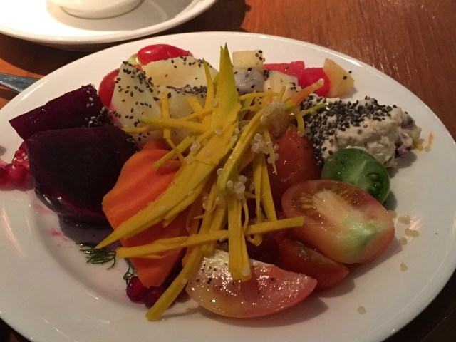 The buffet looked small, but had a quality assortment of meats, breads, pastries, fruits and vegetable salads (shredded carrot & herbs, tomatoes and lemon, beets and pomegranate, potatoes and corn).