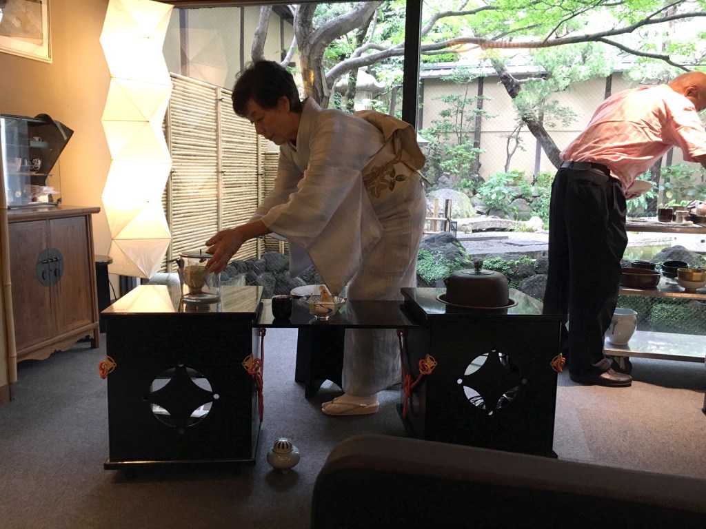 We had come down to the lobby a bit early and were going to do some exploring before the days activities when our host enthusiastically offered us some tea. We sat down and she hurried off, wheeled out a cart, got her husband and so began the most measured and elaborate tea ceremony we’ve ever had the honor of witnessing.
