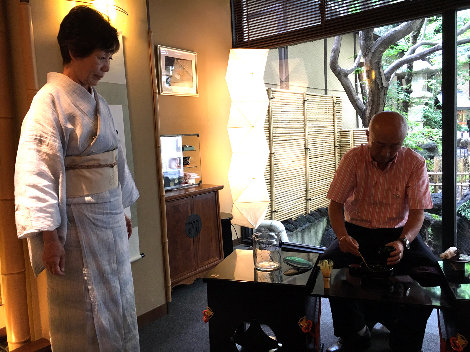 Once she had laid out the necessary apparatus, her husband bowed, seated himself and with intensely precise movements made each of us (one at a time) a bowl of matcha tea. Every aspect of this service was steeped in ritual – from the cleaning of the bamboo whisk to the ladling of the water and frothing the tea to the rotation of the drinking bowls. Every single action was slow and measured, a bit like Tai Chi.