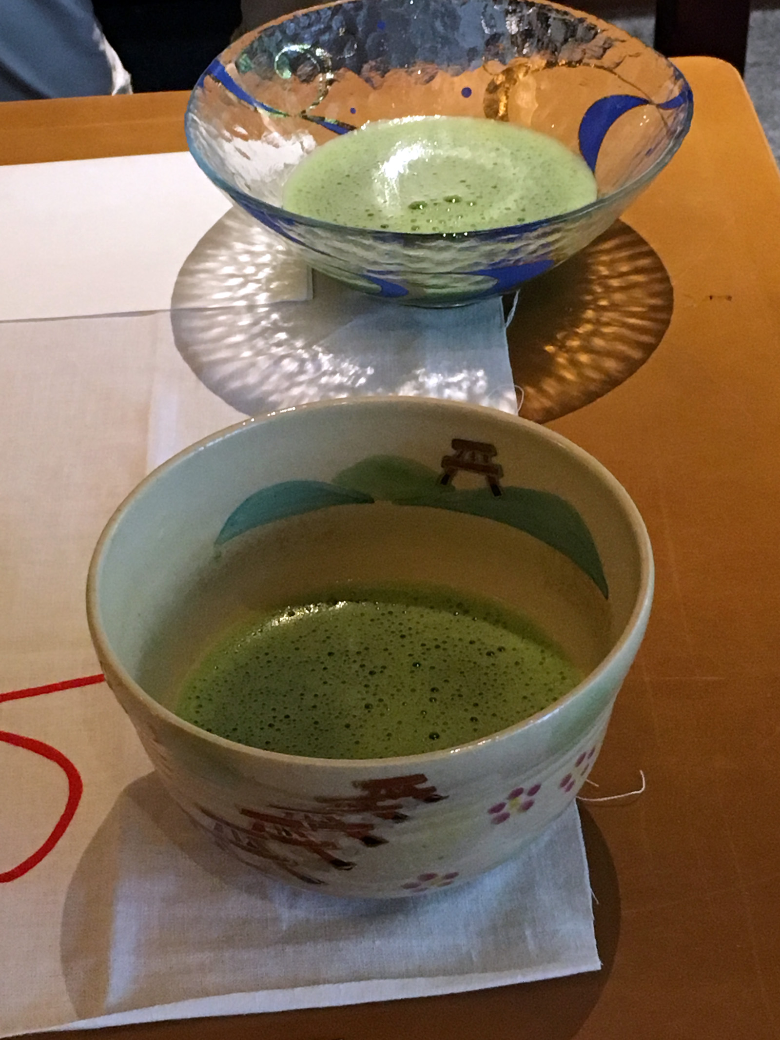 The bowl rotation was a way of honoring us – the front of the bowls (where the design was) would always be presented outward, facing us, then turned again towards him for the preparation, then out again for the presentation.