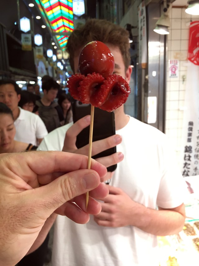 I consumed one of my favorite finds on the trip – a gorgeous, shiny, purple baby octopus whose head was filled with eggs – on a stick of course.