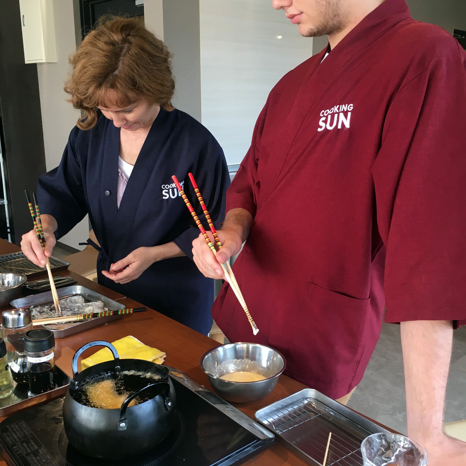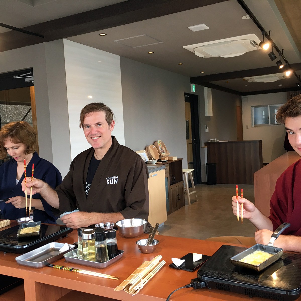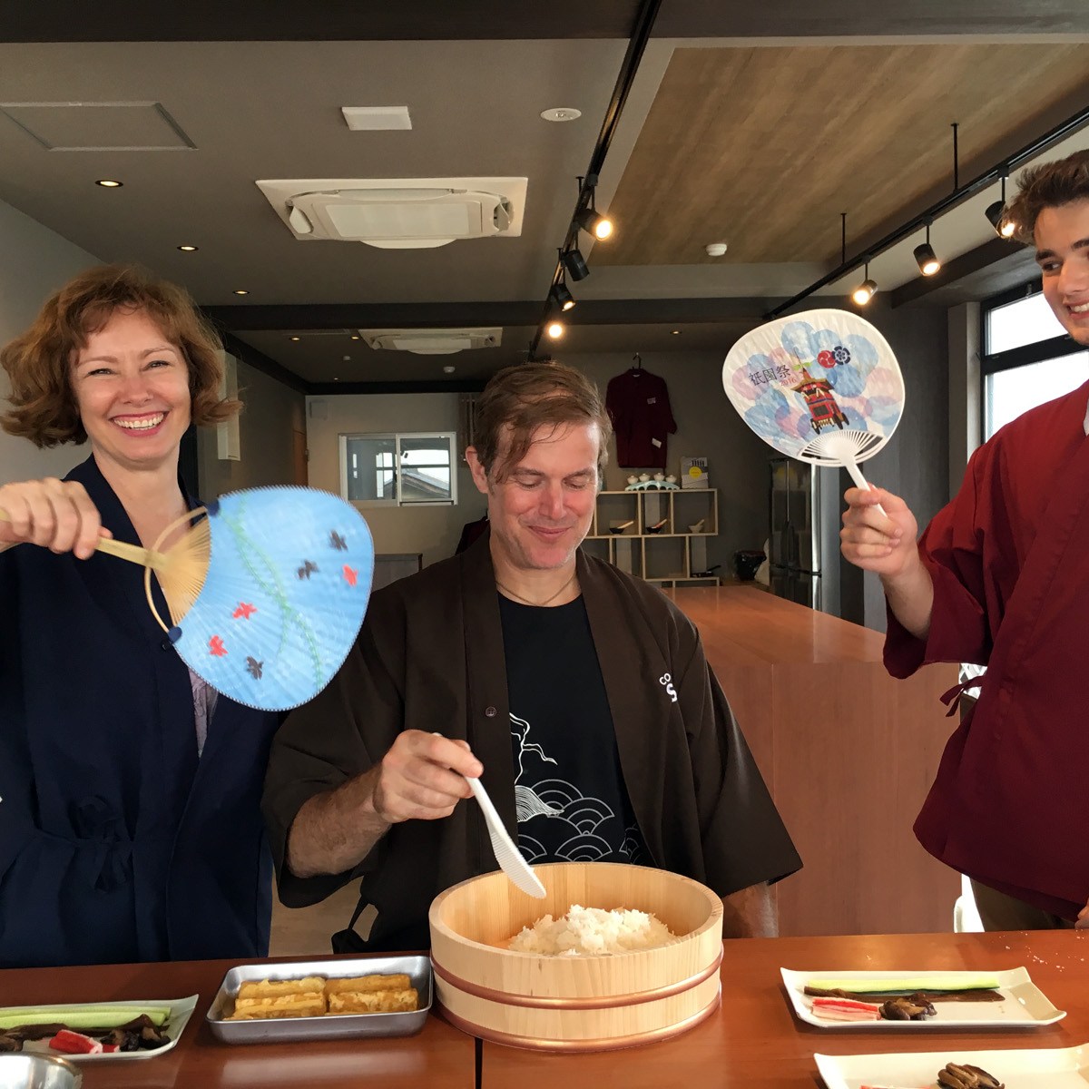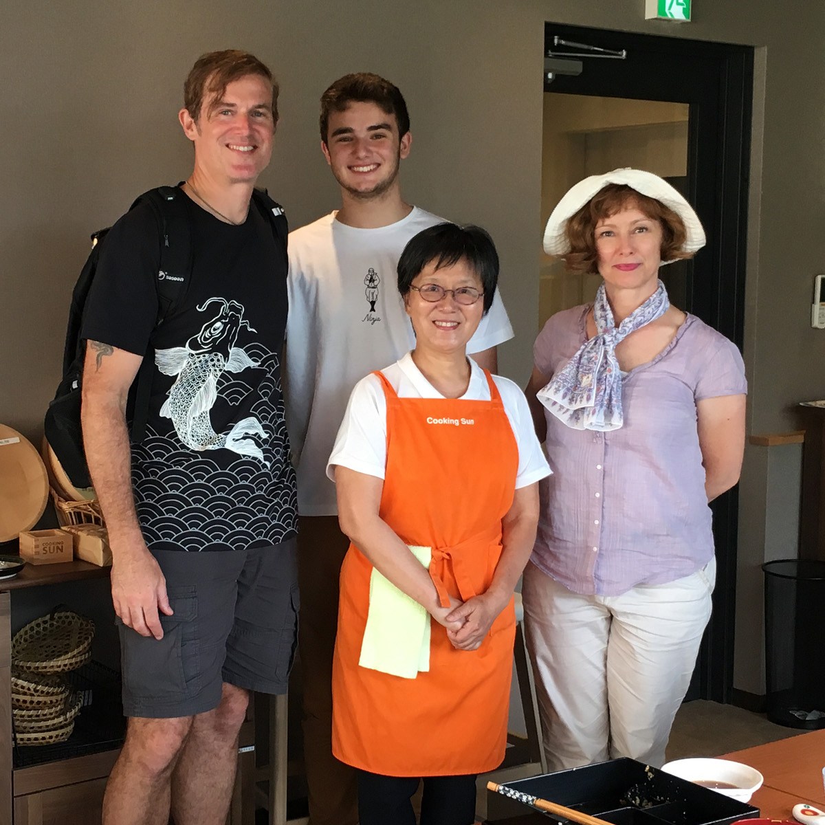 Stasia scheduled a cooking class for us! With our delightful instructor Kazumi, we created then consumed our own bento box creations – making rolled omelettes, teriyaki chicken, miso soup, sesame spinach salad, sushi rolls and tempura shrimp and vegetables.