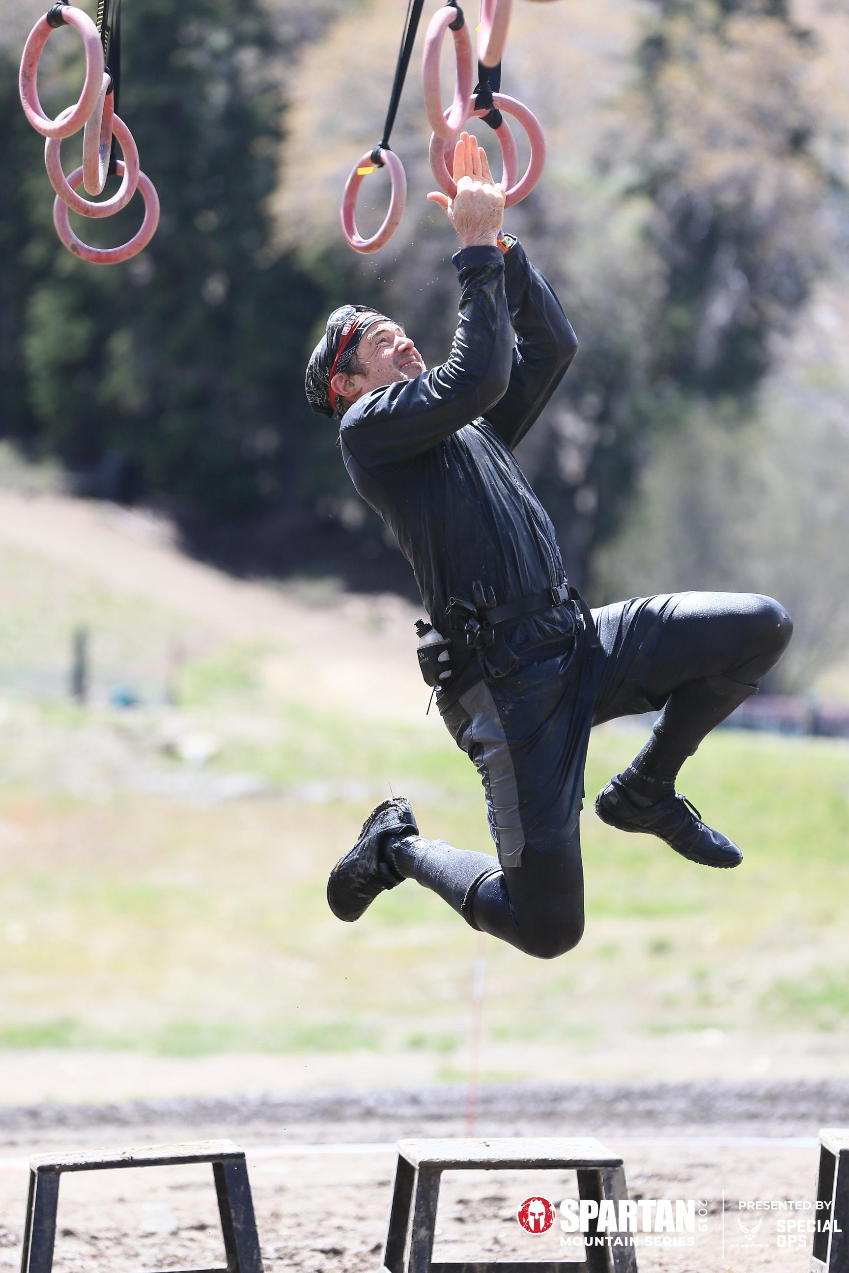 The obstacles are no picnic – often involving scaling 10 foot walls, traversing uphill gyrating monkey bars, flipping 450 pound tractor tires, carrying buckets of rocks and sandbags uphill, climbing ropes, throwing spears and swinging across a length of hanging rings.