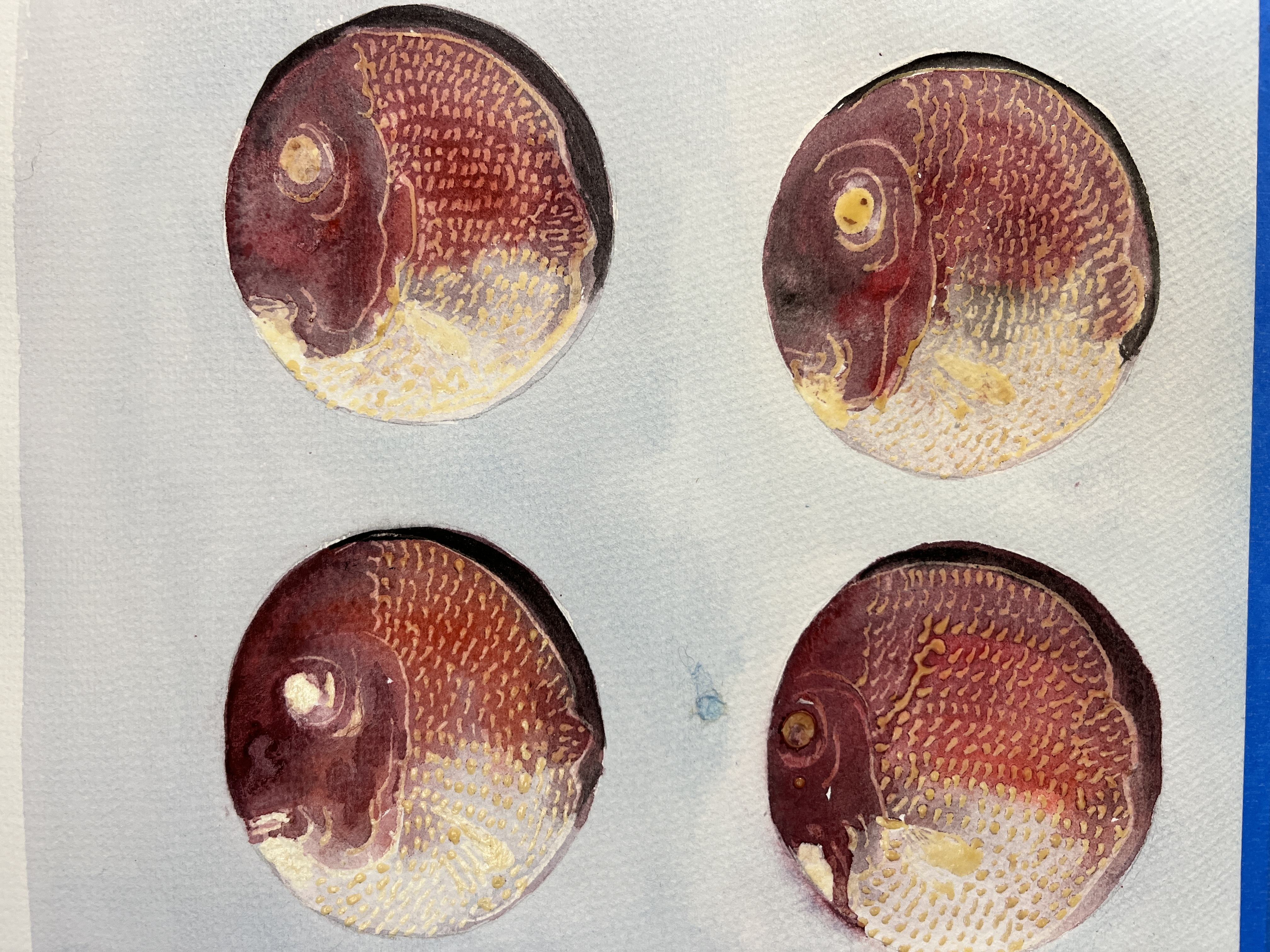 When I return, I find Stasia has listened to three albums from a new favorite band, Fontaines D.C. – a contemporary Irish post-punk group introduced to us by António, our Lisboa foodie tour guide, and new friend. Our flat has been arranged so comfortably and a painting station is set up for tomorrow’s Sumi-e session (traditional Chinese and Japanese ink painting technique). She is part of a project called 365 where 10 painters are creating 4×4 inch pieces for each day of the year. Each month has a theme, which is a color. This month is red and she’s drawn inspiration from our travel experiences.