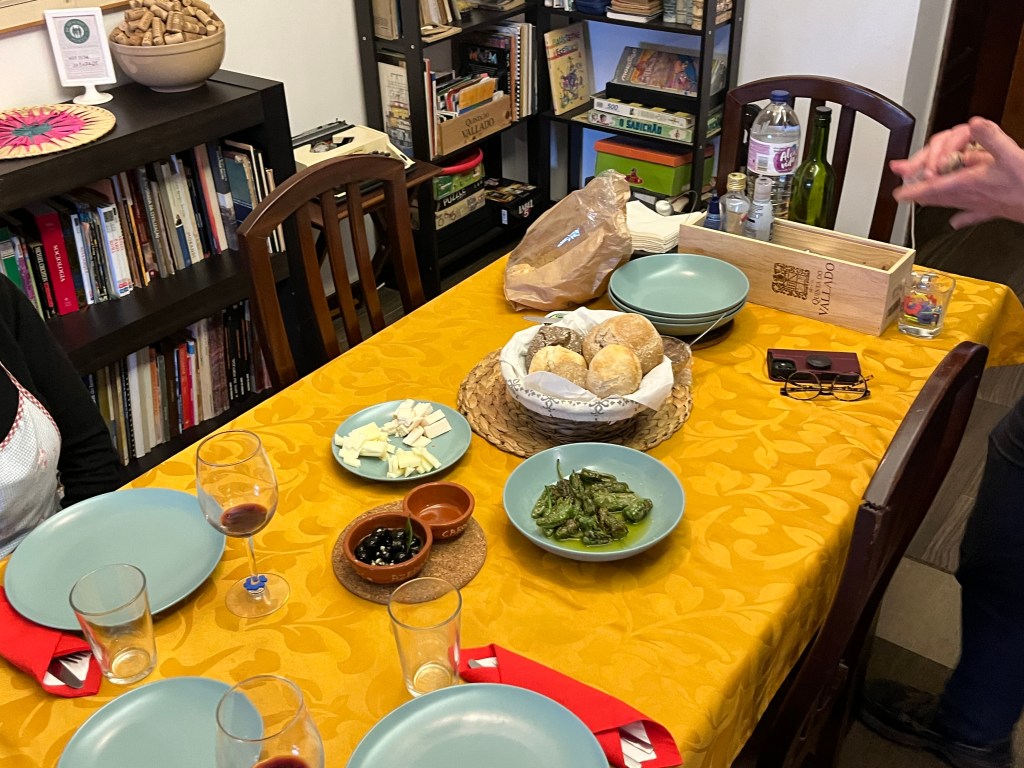 This has all transpired through constant instruction and storytelling. After an espresso and feeling the effects of wine, community, and full bellies the conversation jumps to art/music and YET AGAIN, we find this is THE thing that brings people together. When Nuno learns we are familiar with some of his more obscure references, the conversation moves to a merry road of band-sharing, name-dropping, and connection-making, meeting some of his passing roommates along the way.
