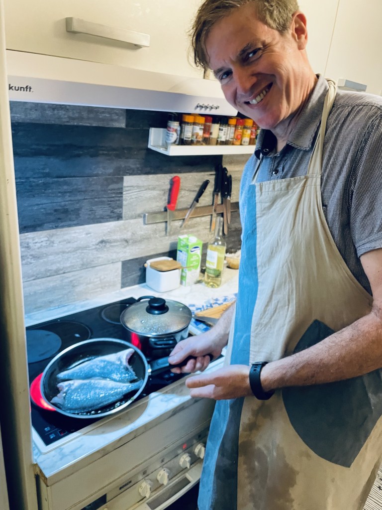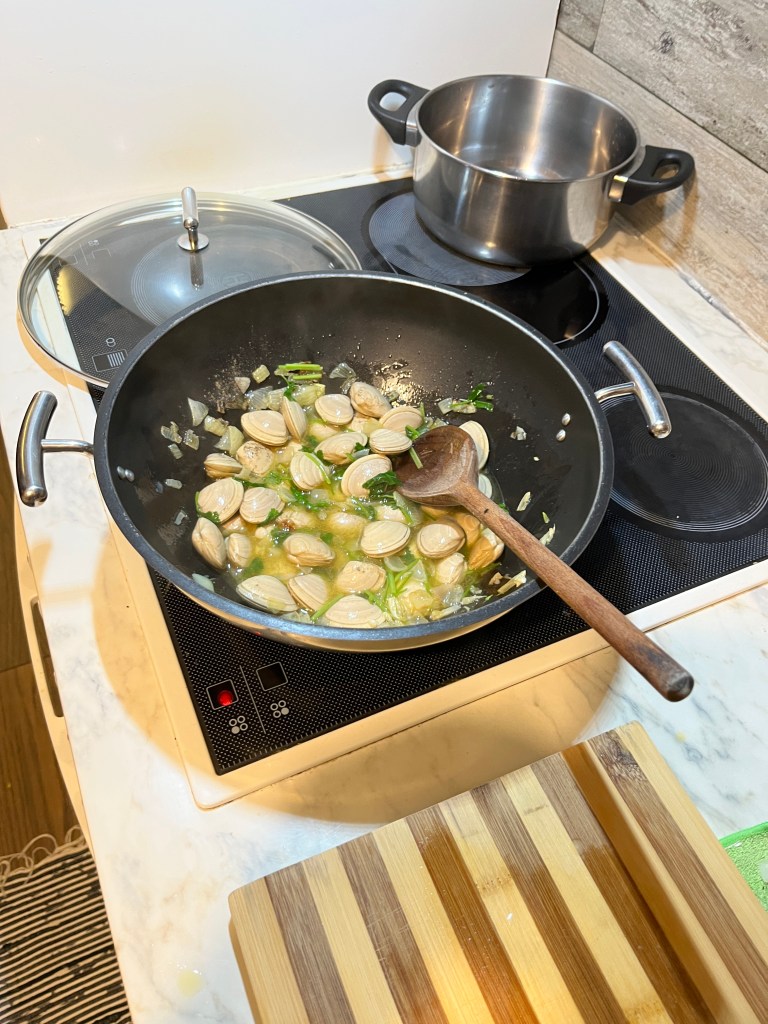It’s a complete experience, cooking with our new friend. Plus, kitty time!