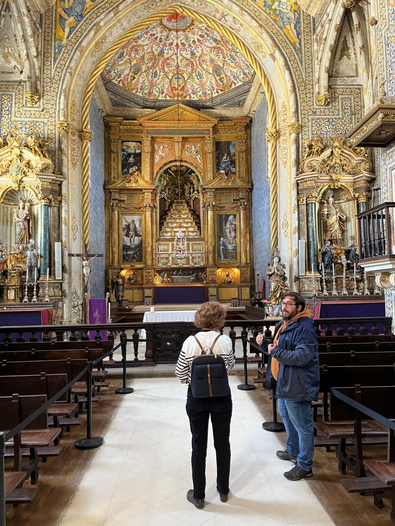 Named after the Patron Warrior Archangel Michael (after the fashion of its founding warrior king, João V), this relatively small but well-adorned chapel in the Manueline style is still in use today – we nearly missed our chance to see it due to a scheduled funeral service. Here, we gazed at the boggling detail and lingered until the rest of the crowd dispersed, leaving just us and the attendant. On further inspection, and with the expert guidance of João, we found many absorbing nuances. As you might have guessed by now, the name João is pretty common. Just like its western counterpart, you can’t throw a rosary bead without it bouncing off an owner of this old testament namesake.