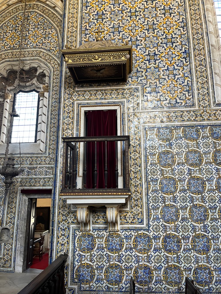 I think you’re referring to the tiles inside St. Michaels Chapel. The style of the chapel’s architecture and interior is Manueline – a short but really exciting period of Portuguese history – during the age of discovery – and pulls in all the influences of the new worlds de Gama traveled to. Definitely alot of Moorish/Islamic influence. Check it out: https://en.wikipedia.org/wiki/Manueline