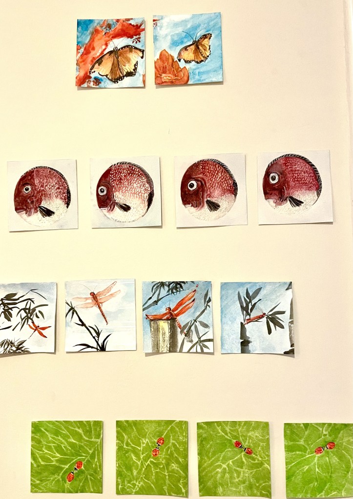 Yesterday was a bit of a non-vacation day for us – we hardly left the flat. Stasia channeled the beautiful sunny weather in through the generous flat windows and used it to paint. She’s been keeping up with her daily ‘365’ project and we’re both pleased as pomegranates with the results – this session bringing kissing ladybugs along Sumi-é butterflies and bamboo stalks.
