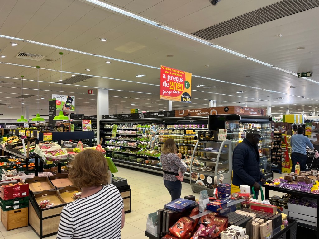 A sudden hankering for the gelato place we just passed makes us park and as we’re strolling around a corner we happen upon the holy grail of grocery quests – a mega-sized version of Pingo Doce! I could spend weeks here and that isn’t too much of an exaggeration. We’re total supermarket nerds.