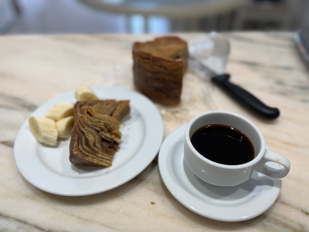 We end our stay with espresso and a nibble at another national treat, Folar de Olhãu, which is eaten around Easter. Essentially it’s a layered sugary coffee cake sort of thing which lures you in with its promise of cinnamony comfort and crystally pop of sweetness.