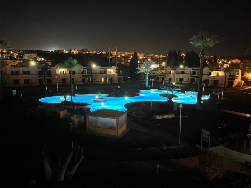 We’ve enjoyed this condo timeshare despite never having taken advantage of the pool, which glows in the night like some fountain of youth. It’s always windy and cool at night and for all the light show, the resort isn’t heating the jacuzzis yet (out of season). Like either turn on the heat or turn off the lights.